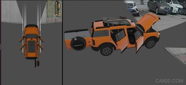 针对车底与车轮盲区,该方案利用历史帧图像信息与实时运动补偿,实现精确填充车底盲区图像。无论车辆是直行还是转弯,底盘画面均显示清晰、无错位,并支持在2D与3D视图下叠加透明车模显示。