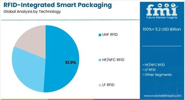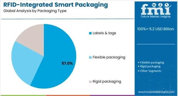 对药品序列化的监管审查进一步推动了向数字化供应链的转变,促使制造商优先考虑经过验证的技术驱动追踪系统。物流和供应链包装的需求,尤其是在电子商务和零售分销领域,加速了专业RFID集成解决方案的采用。食品和饮料行业正在整合智能包装以实现新鲜度监测和库存管理,进一步支持这一势头。微型化和成本降低的技术进步促进了更高的可及性和采用,确保了长期应用的可行性。