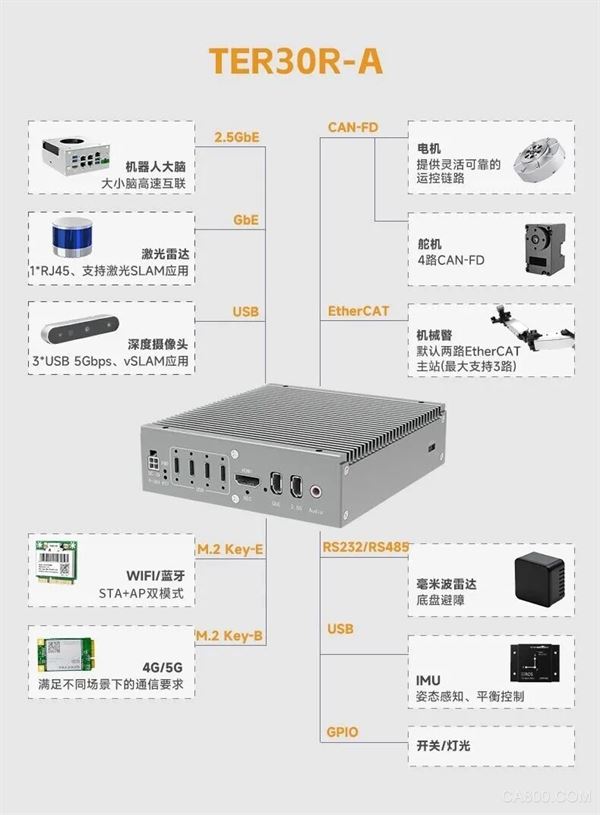 提供“实时生命线”的硬件载体:专为极限实时需求设计的“大小脑”计算平台,提供确定性的微秒级控制周期与超高带宽通信,确保每个关节指令被精准、准时执行。