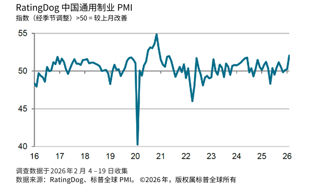 - 2026 年 2 月新订单创下 2020 年 12 月后最快增速 产量录得 2024 年 6 月后最强增幅