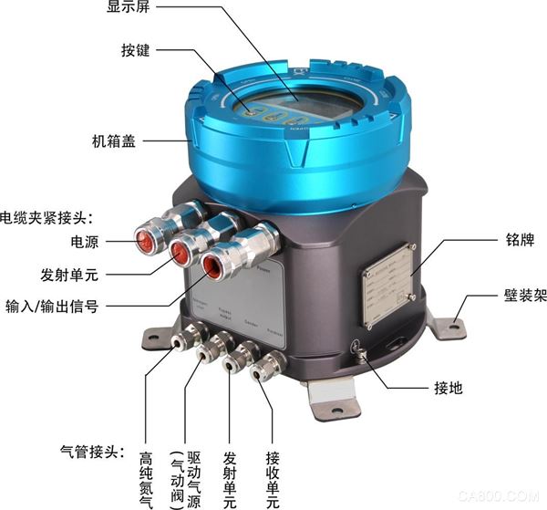 通上电源,开启根部阀,半导体激光器发射出的特定频率的激光通过发射单元穿过气体通道,接收单元中的传感器接收衰减后的激光束,并将测量信号传送给中央分析模块,中央分析模块通过对测量信号进行分析处理,得到被测气体浓度,气体浓度信息通过显示屏显示出来并通过标准接口输出。