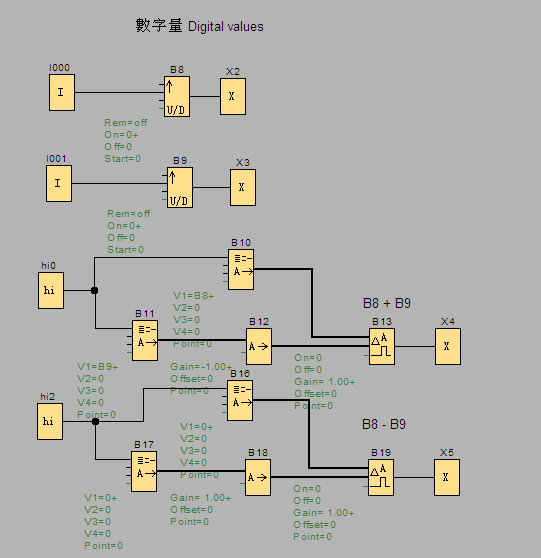 用到了模拟量比较器,模拟量放大器,完成模拟量的加减乘除。