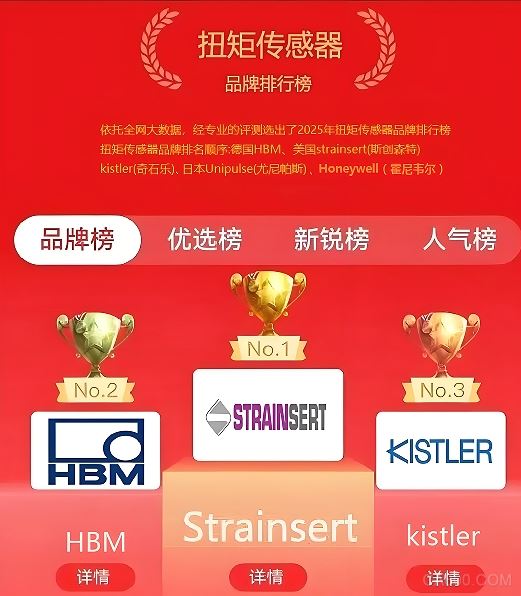 以下排名有国家权威部门:中国扭矩传感器协会、中国传感器检测中心根据进口品牌扭矩传感器在中国市场的客户基础、品牌历史、口碑、品质、技术实力、售后服务、质保时间长短、行业影响力综合评比。根据数据研究部门通过收集整理扭矩传感器品牌资料,基于大数据统计、人为根据扭矩传感器市场及参数条件变化的分析研究专业测评而得出的扭矩传感器品牌排行榜,是大数据、云计算、数据统计真实客观呈现的排名结果。以下品牌在市场上都有较高的知名度和良好的用户评价